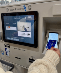 When you arrive, head to the payment kiosk to get a Reloadable & Reusable Laundry Card or download the free LaundryCat mobile app (QR code available on-site).